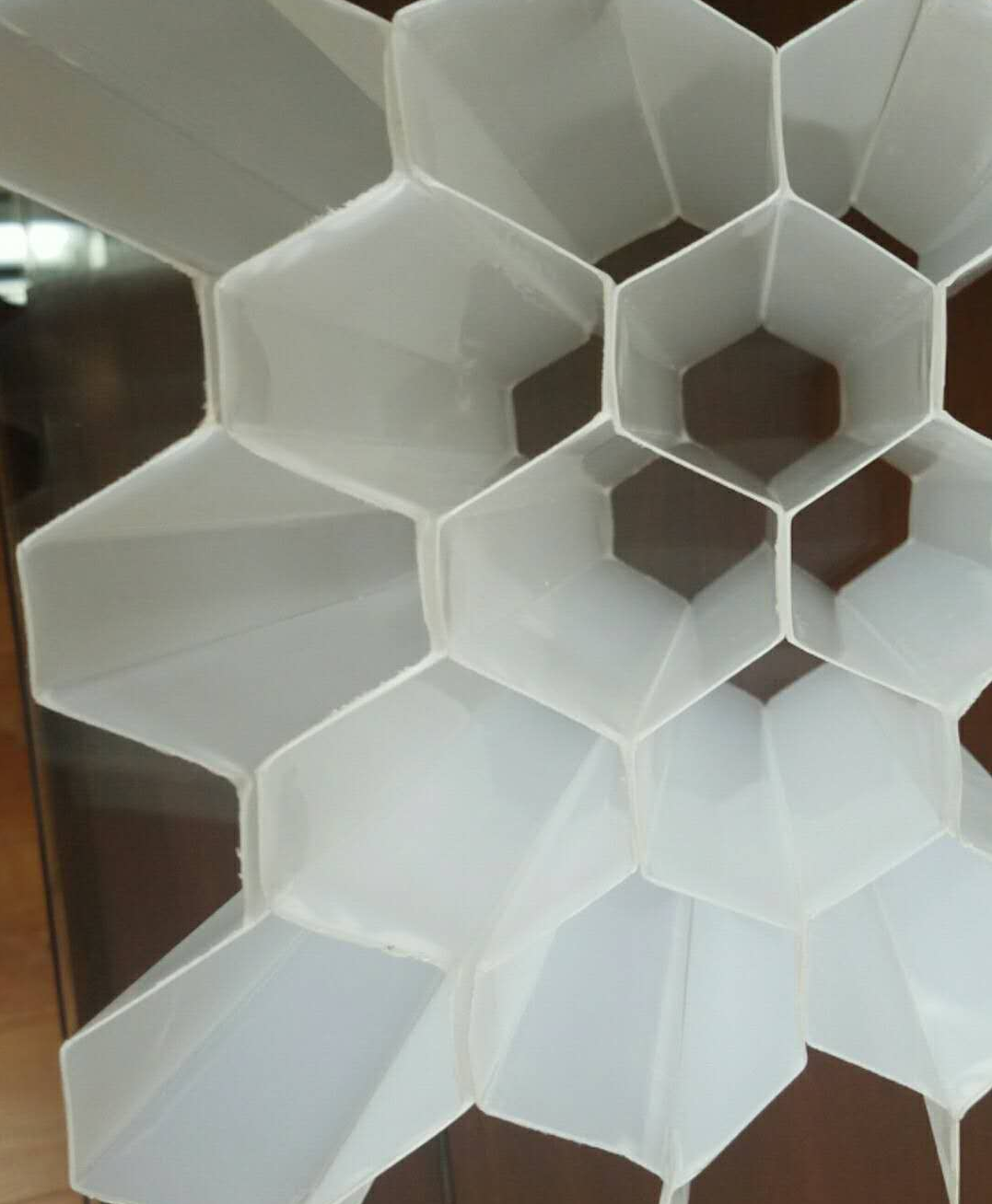一、蜂窝填料:六角蜂窝填料有斜管和直管两种,材质有聚丙乙稀和聚氯乙稀高强度耐久性塑料。斜管利用多孔形沉淀除掉给排水工程中进水口泥砂,一般工业和生活用水沉淀、污水沉淀、隔油及尾矿浓缩等处理效果很好,也可用于滤池改造。特点是湿周大,水力半径小,层流状态好,颗粒沉淀不受絮流干扰。直管用于高负荷生物滤池、塔式、淹没式生物滤池及生物转盘的微生物体,对城市污水和工业有机废水进行生化处理。特点是占地面积小,处理效果好,曝气强度低,不须污泥回流。